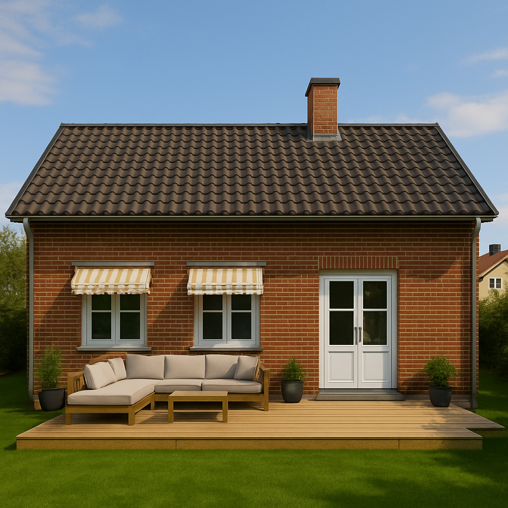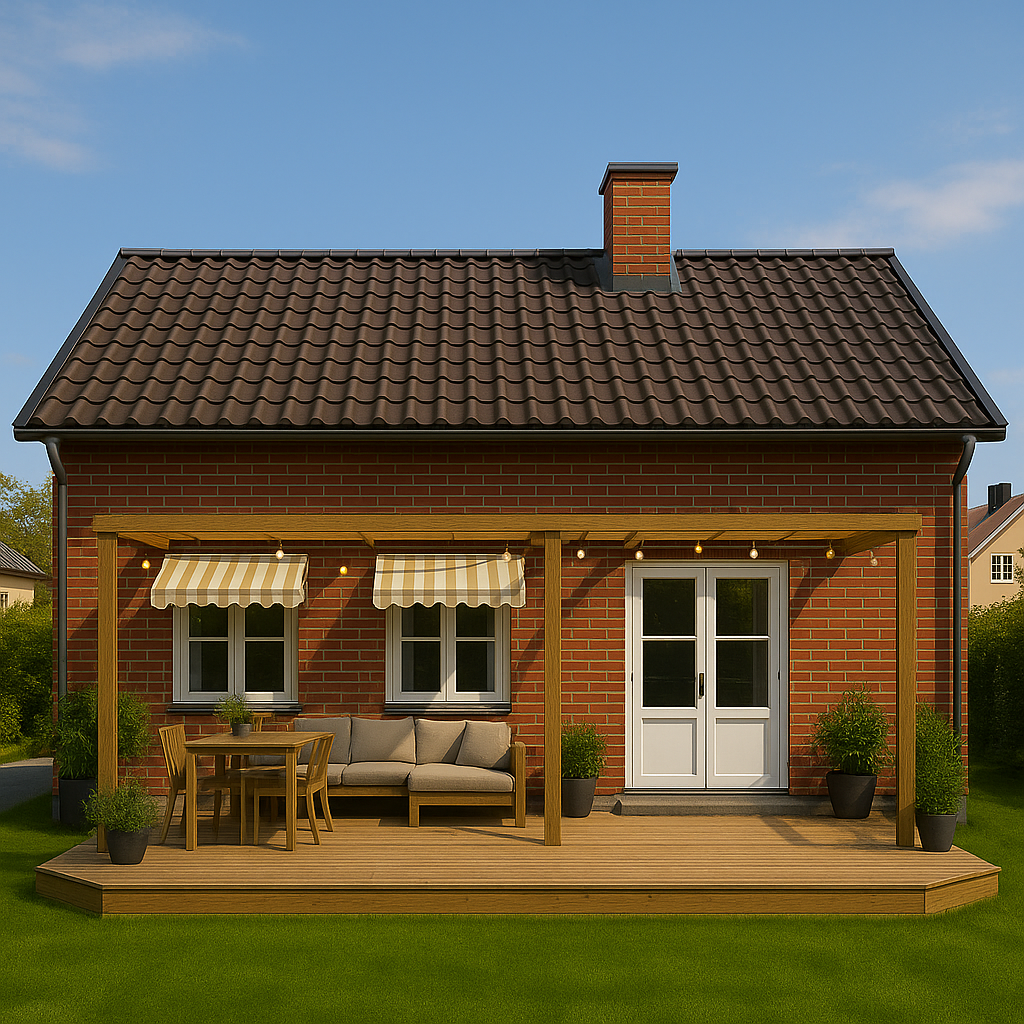 AI-gerðar útgáfur: pallur við múrsteinshús