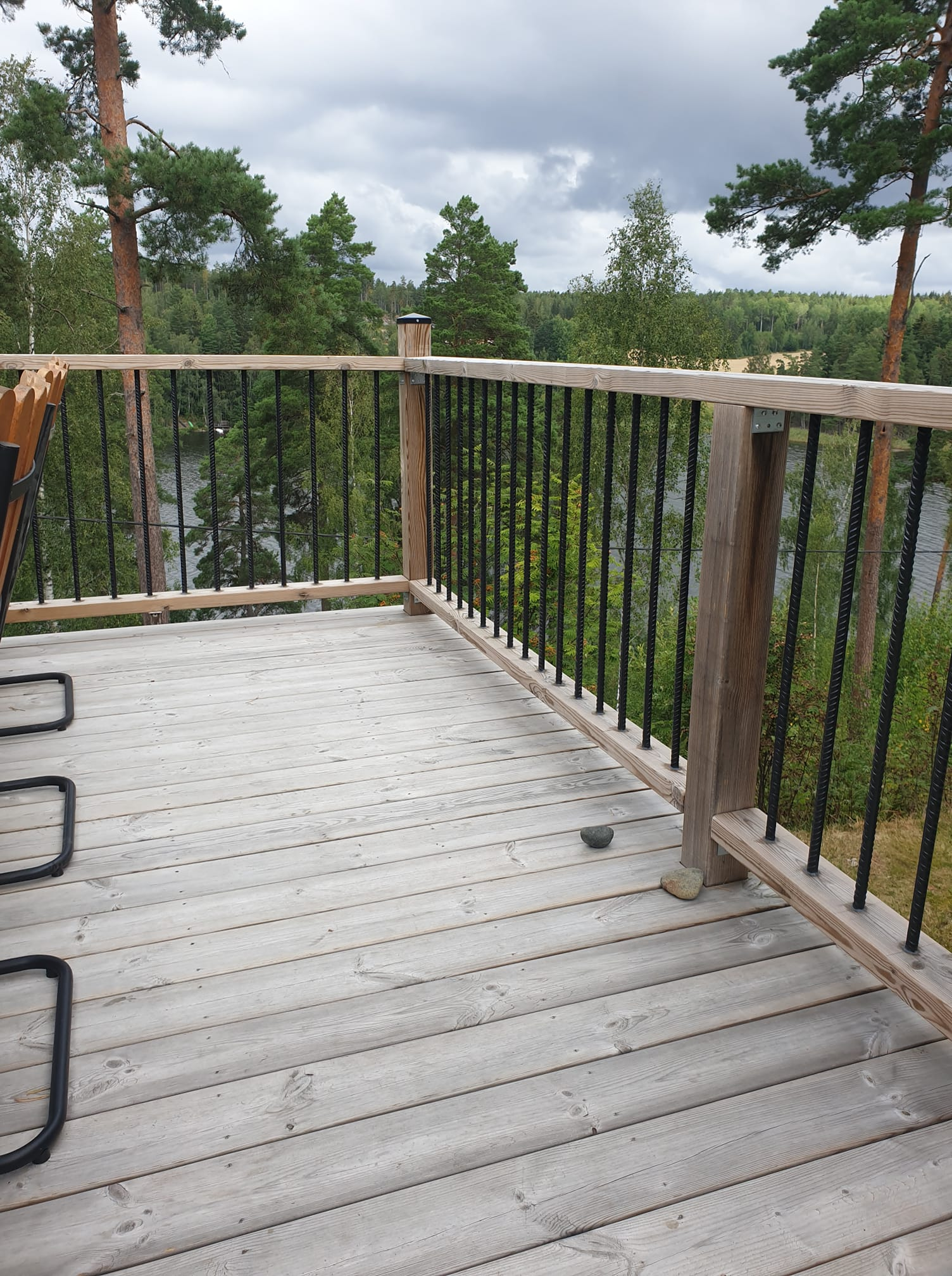 Kostirnir við standandi handrið eru margir. Lóðrétt hönnunin gefur tilfinningu fyrir hæð og hefðbundið útlit sem passar við margar tegundir húsa. Lóðréttir rimlar gera það líka erfitt fyrir lítil börn að klifra, sem eykur öryggið. Auk þess er tiltölulega auðvelt að byggja það sjálf/ur og krefst ekki mikils efnis.