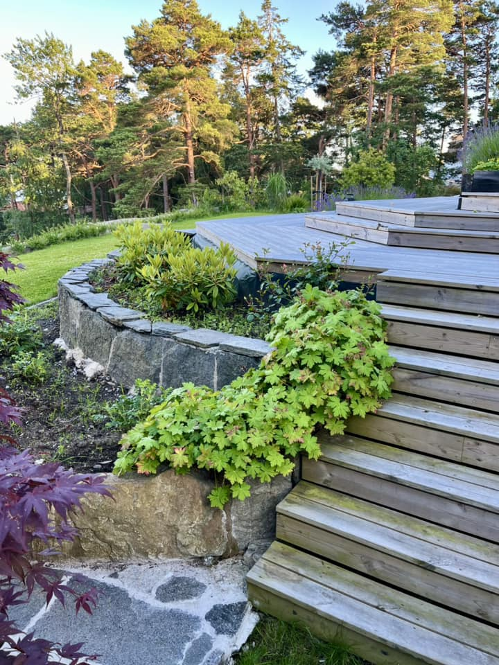 Blómakassar eða plöntuker meðfram kanti pallsins geta virkað sem falleg og hagnýt afmörkun.