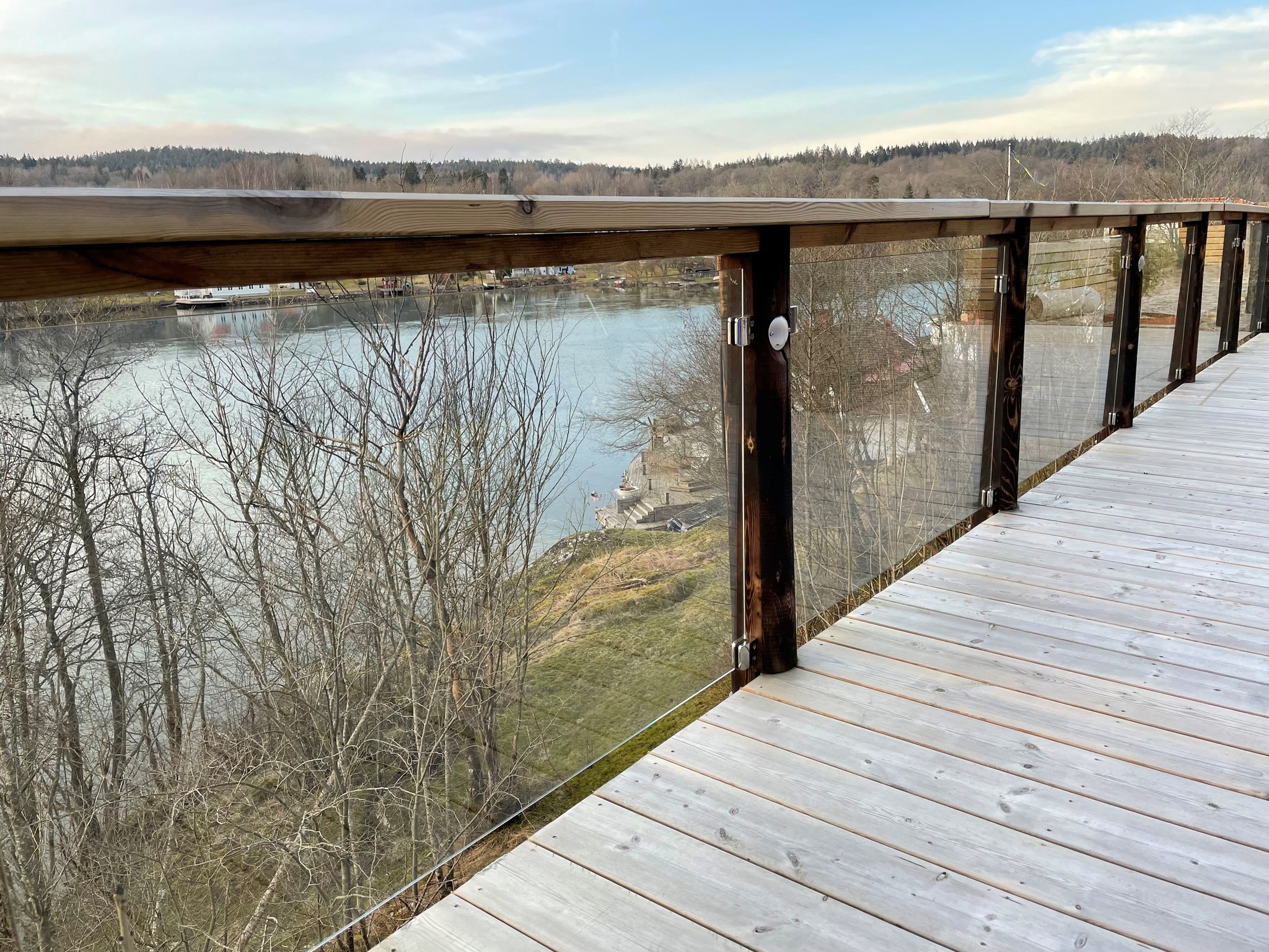 Dæmi um glerhandrið. Smelltu á myndina til að stækka.