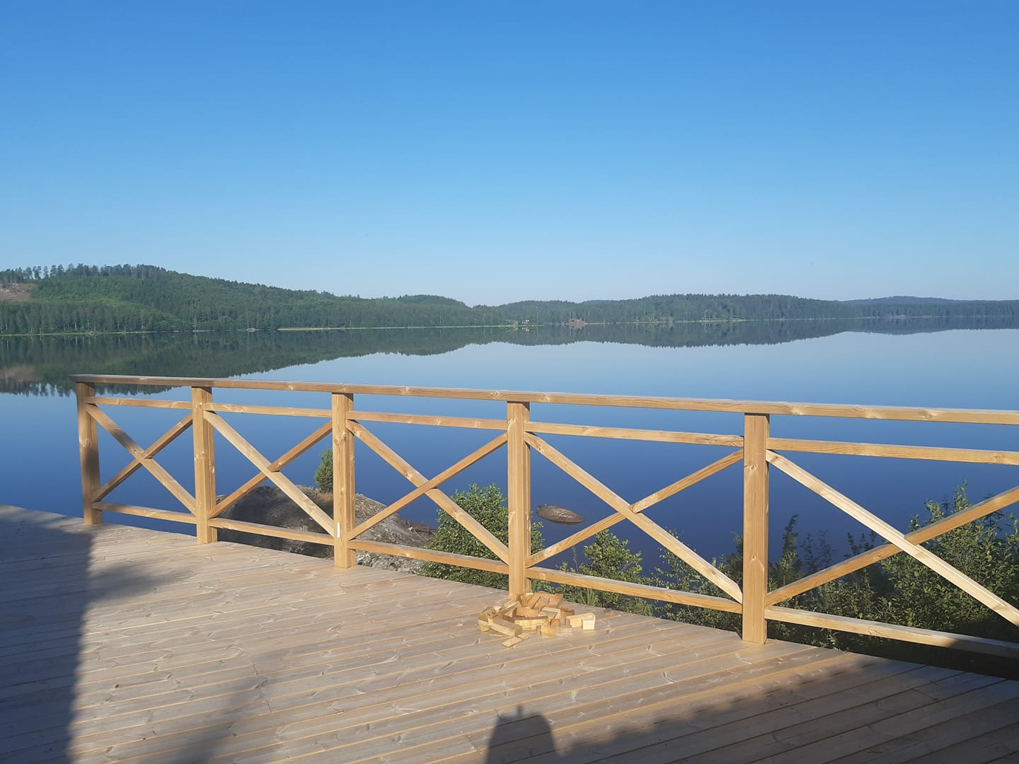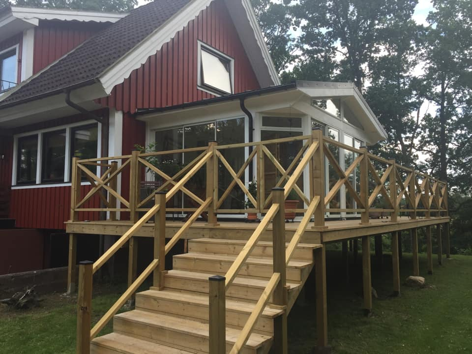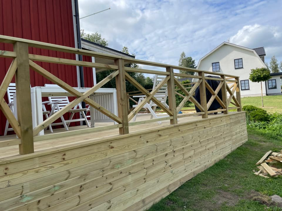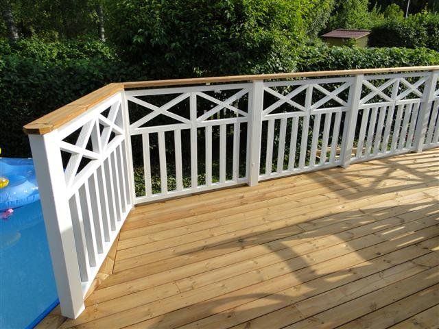 Krosshandrið gefur pallinum klassískt og stílhreint útlit. Þetta handrið samanstendur af tveimur þverbitum sem ramma inn skásettan kross.