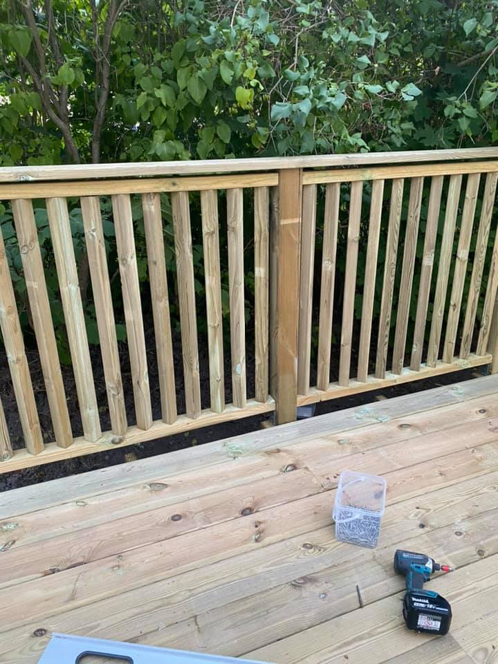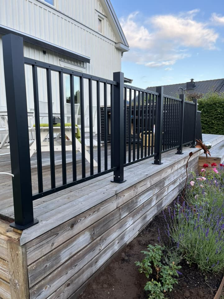 Standandi handrið er tímalaust og glæsilegt val fyrir pallinn. Þetta handrið samanstendur af tveimur þverbitum sem ramma inn lóðrétta rimla. Yfirleggjari ofan á bætir bæði stöðugleika og virkar sem þægileg handriðsbrún.